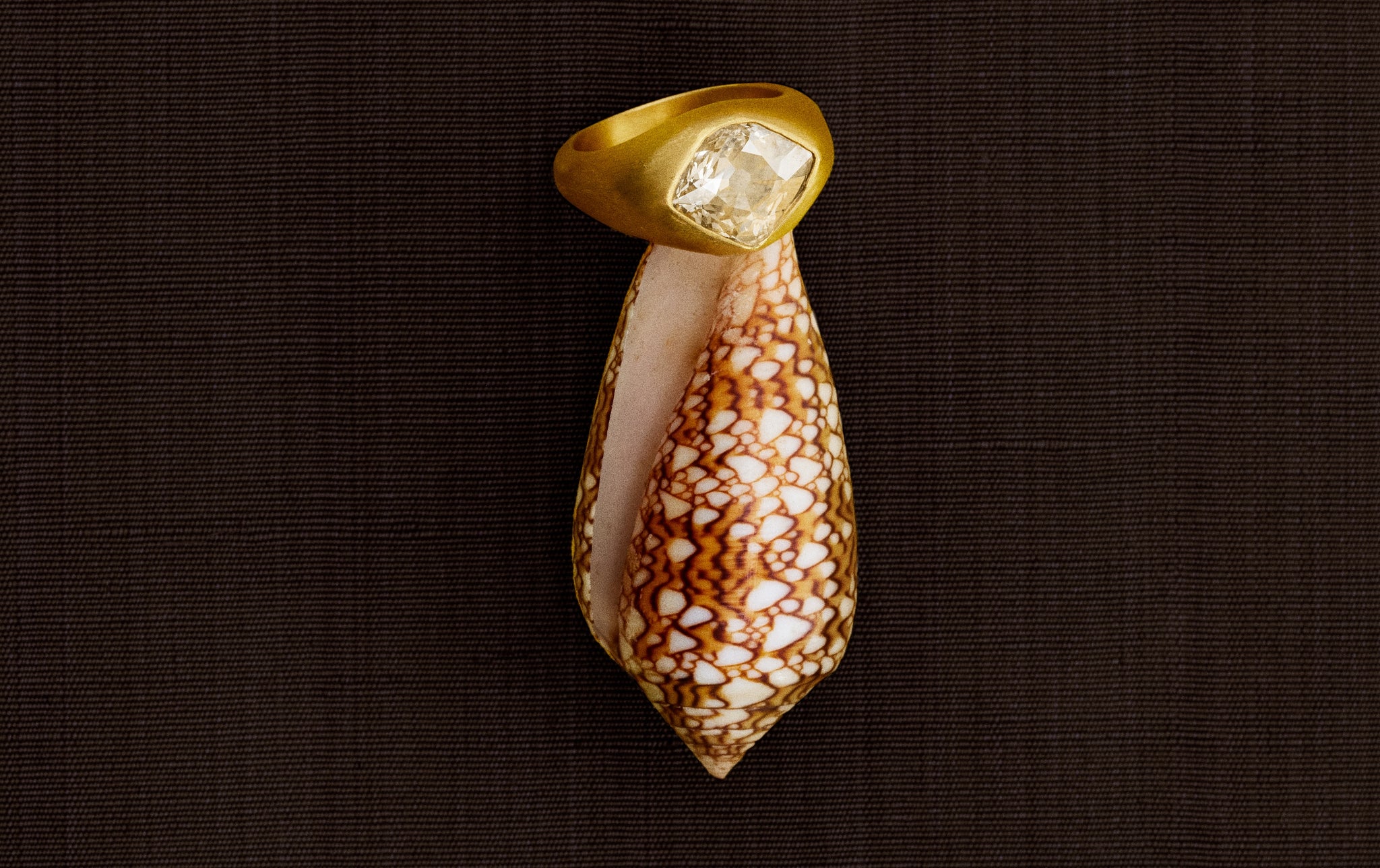 ONE OF A KIND FANCY ORANGE BROWN OLD MINE CUT DIAMOND ZIGGURAT GEM SIGNATURE BAND